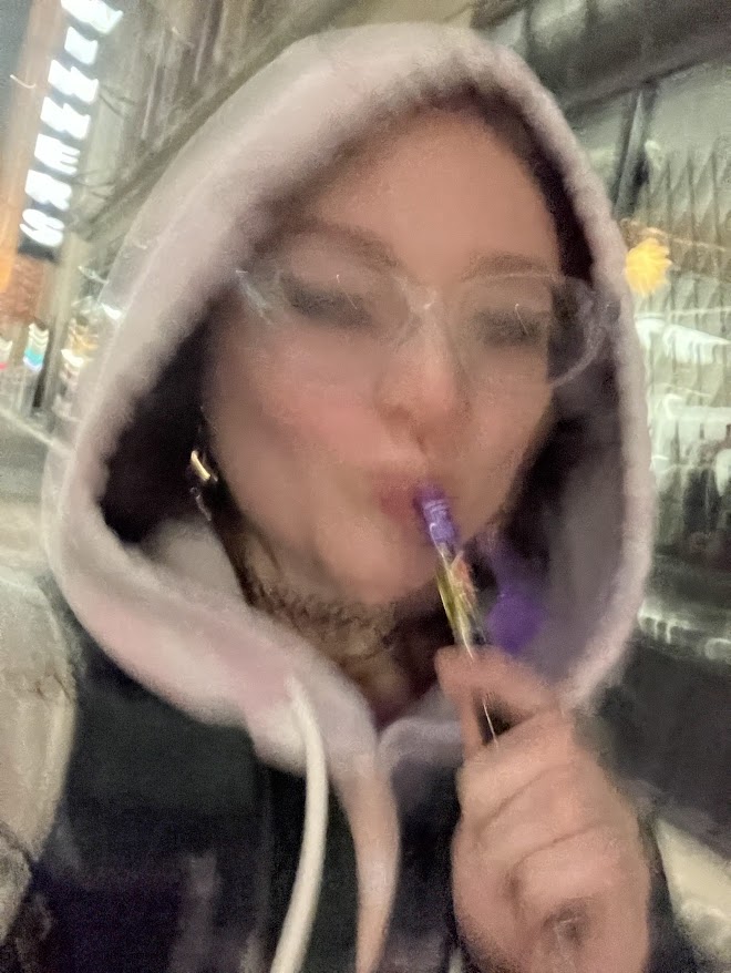 Once we got out of thge thrift store I took a hit off the penjamin in the parking lot. Across the parking lot was a McDonalds. My step sister was thirsty, so we drove over to the drive through to get some drinks, I also got some fries. My step sister didn't find any pants that fit her so we went to the thrift store closer to our house. The drive over there was all vibes. I had my fries, I was feeling the penjamin, and I was jamming out to my tunes.